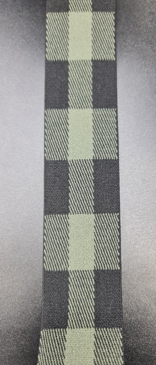 Checked Elastic (BLACK & OLIVE) (4cm) (SOLD PER METER)
