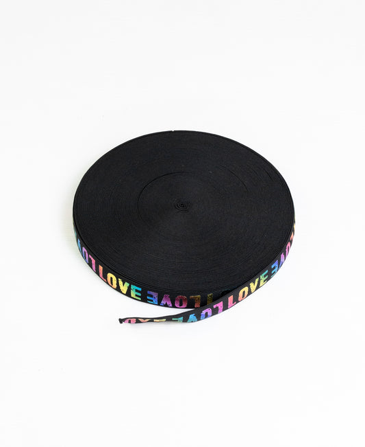 Printed Elastic - Rainbow "LOVE" (25mm) (SOLD PER METER & ROLL)