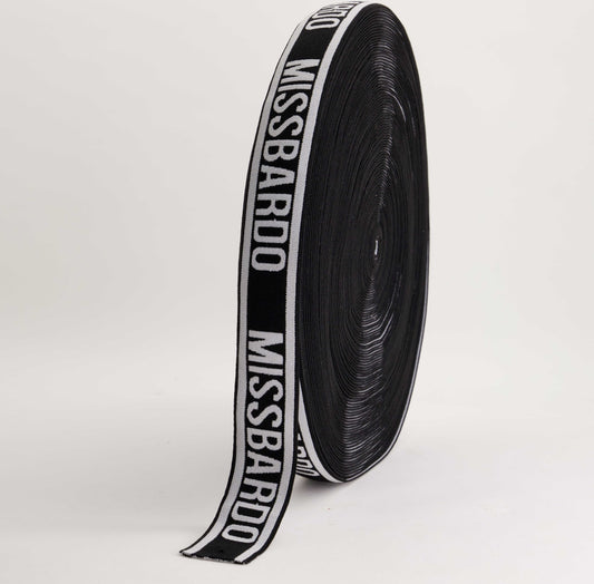 Printed Elastic - Black/White "MISSBARDO" (40mm) (SOLD PER METER & ROLL)
