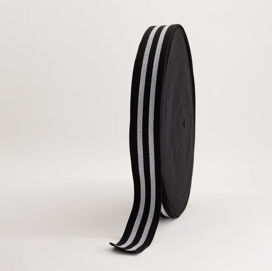 Fancy Elastic - Silver Striped Lurex (40mm) (SOLD PER METER & ROLL)