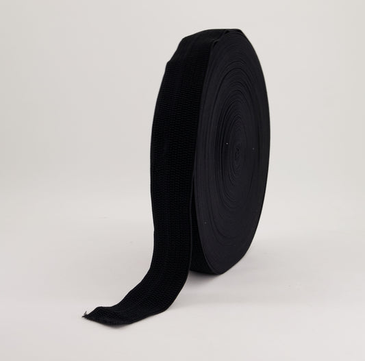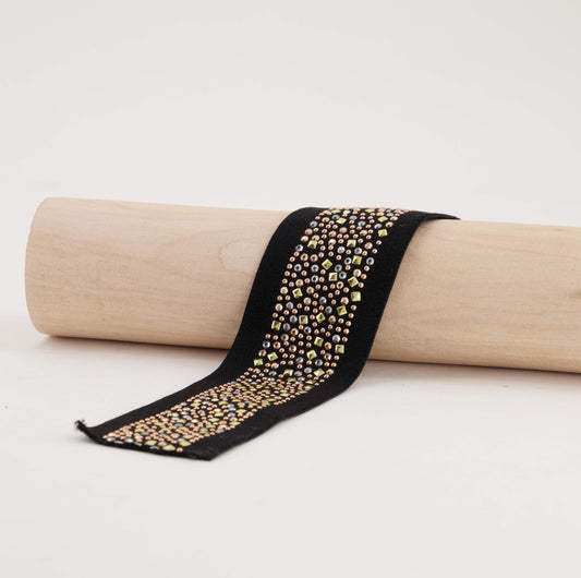 Fancy Elastic - Beaded Black (40mm) (SOLD PER METER & ROLL)